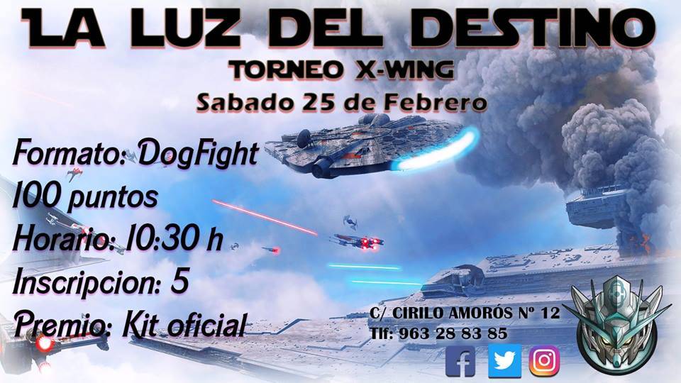 SÁBADO: 11.00 horas. Torneo de Star Wars: X-Wing. Inscripción: 5€. Premios: kit promo oficial. Evento aquí. // 17.30 horas. Magic: Standard series. Inscripción: 3€. Todo lo recaudado a repartir en vale de tienda entre los primeros clasificados. // 17.30 horas. Star Wars Destiny. Torneo, inscripción: 5€. Premios: Kit promo oficial.